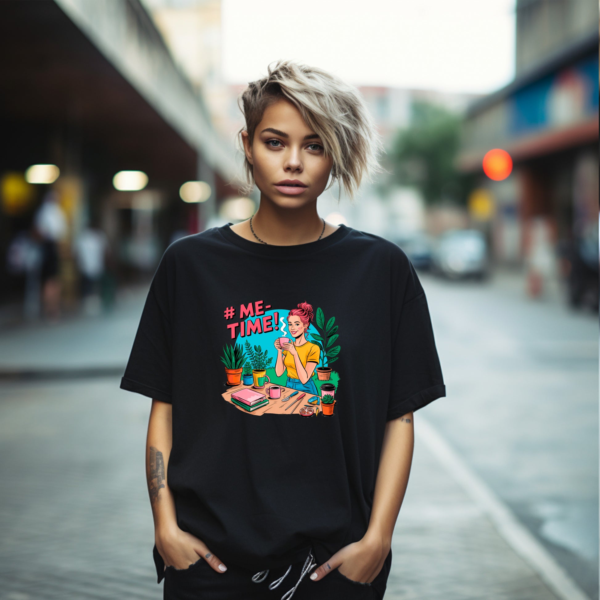 Ob Basteln, Pflanzen umtopfen, Journal schreiben oder einfach mit ’nem Kaffee durchatmen – dieses Bügelbild feiert deine ganz persönliche Auszeit! Mit knalligen Farben, cooler Comic-Optik und jeder Menge Kreativ-Chaos auf dem Tisch bringt es Power und gute Laune auf Shirts, Taschen, Kissen & mehr.